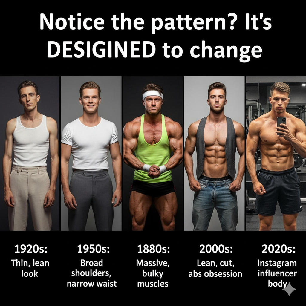 And today? It's the impossible Instagram fitness influencer physique that requires 3 hours in the gym daily, a personal chef, and genetics that 99% of men simply don't have.